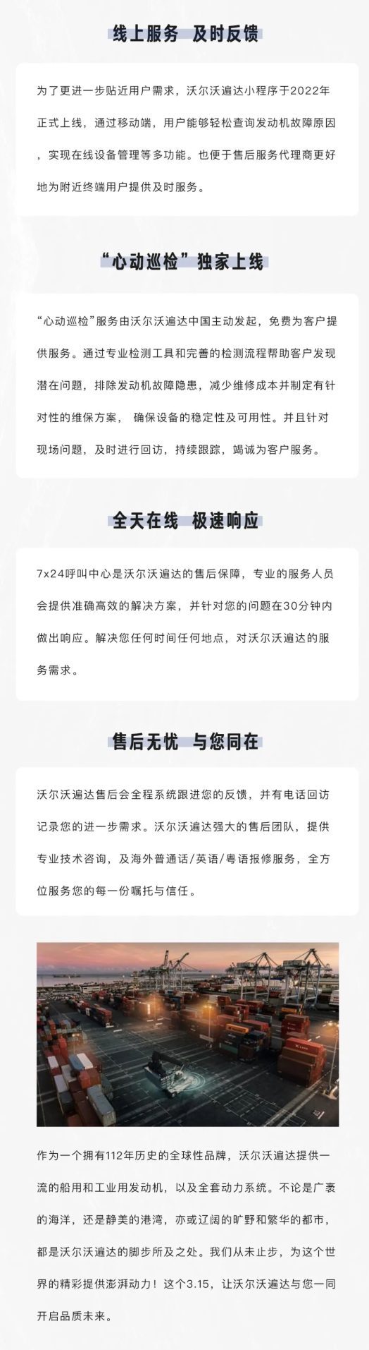 海洋是文明的氤氳,無數(shù)藍(lán)色夢(mèng)想在這里找到航向。在這個(gè)乘風(fēng)而上的時(shí)代,沃爾沃遍達(dá)始終堅(jiān)持秉持安全、質(zhì)量、環(huán)保的發(fā)展理念,為海洋產(chǎn)業(yè)提供更強(qiáng)的動(dòng)力,以深耕動(dòng)力行業(yè)的實(shí)力與信心,在減排的綠色革新道路上奮發(fā)而行。沃爾沃遍達(dá)愿與您同行,在一片蔚藍(lán)里讓夢(mèng)徜徉,在一方沃土上尋光遠(yuǎn)航!